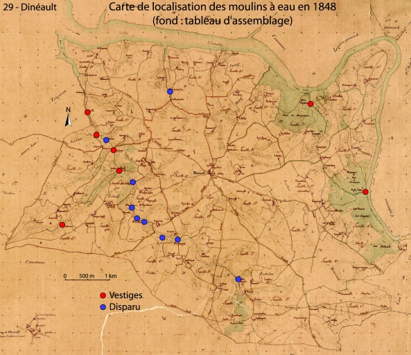 Les moulins de la commune de Dinéault,