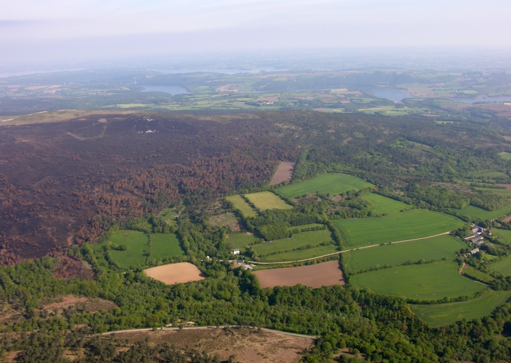 Contreforts du Ménez Hom, vue aérienne vers l'est. De gauche à droite : Kergaoc, Dorvenez et Kernalivet (Photo Paraflash)Immatriculation