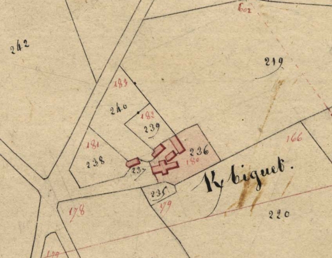 Extrait du cadastre de 1813, section H 1 (A. D. Finistère, 3 P 163)Immatriculation