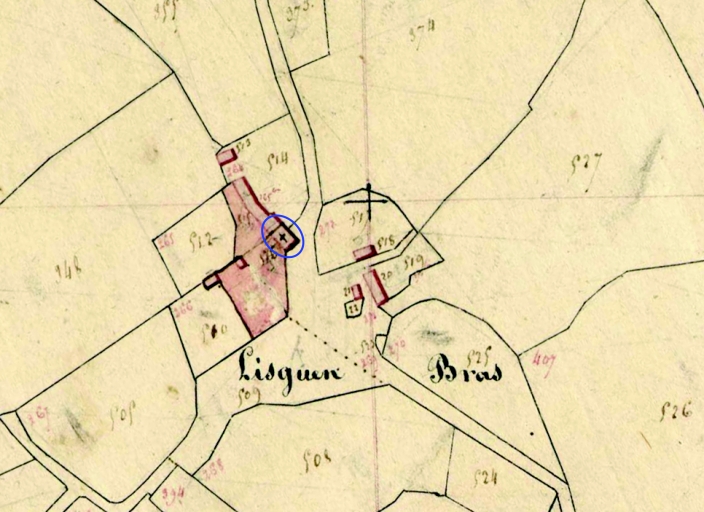 Localisation sur l'extrait du cadastre de 1813, section L 2 (A. D. Finistère, 3 P 163)Immatriculation