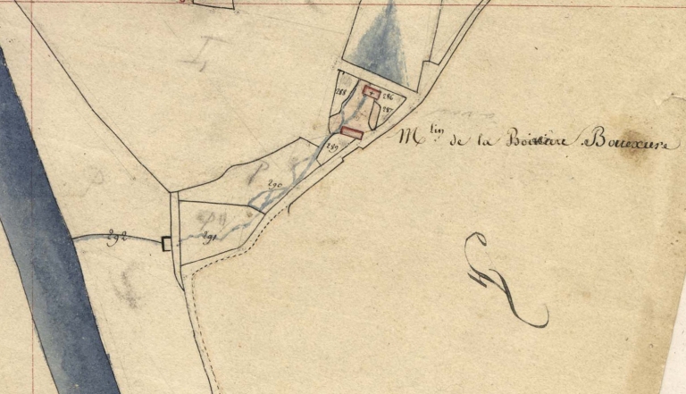 Le moulin de la Boissière en 1812, section G 2 (A. D. Finistère, 3 P 163)Immatriculation