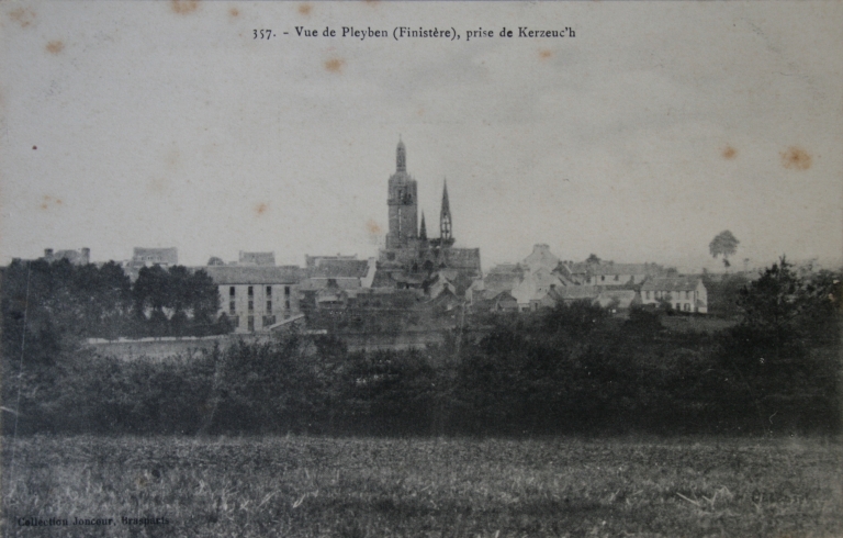 Vue générale du bourg depuis Kerzeuc'h à l'est, carte postale, début 20e siècle (collection particulière Michel Penven, association 'sur les traces de François Joncourt')Immatriculation
