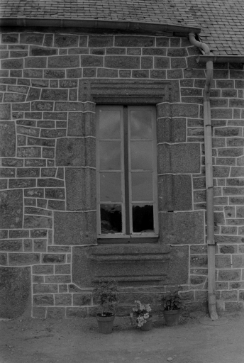 Fenêtre à appui saillant et décor de baguettes croisées sur le linteau, Mellé, 1974Immatriculation