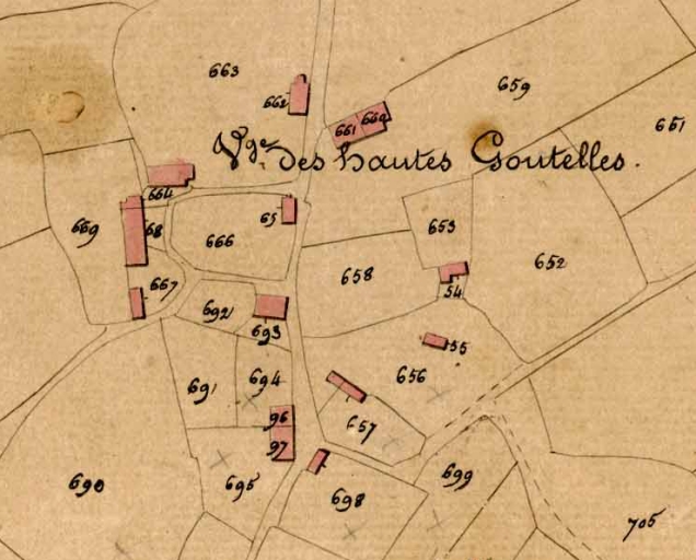 Les Hautes Goutelles sur le cadastre de 1834.Immatriculation