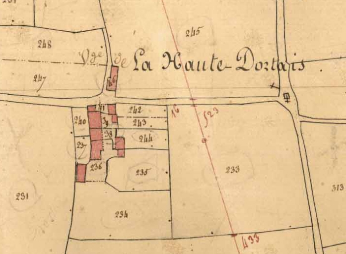 La Haute Dortais sur le cadastre de 1834.Immatriculation