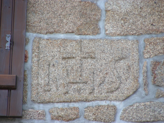Monogramme du Christ sculpté sur la façade du manoirImmatriculation