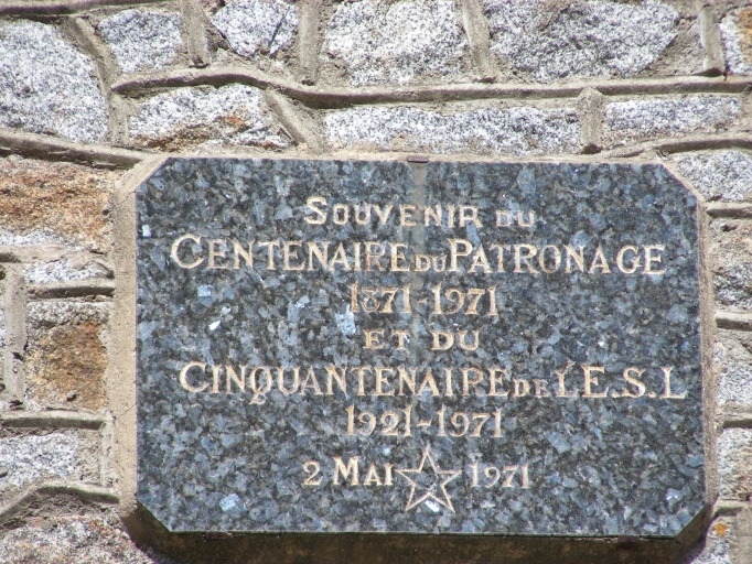 Plaque sur le bâtiment du patronnageImmatriculation