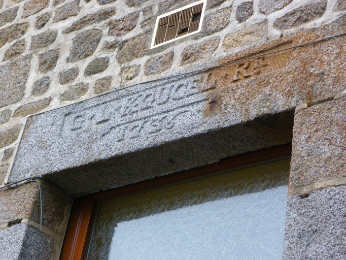 Inscription, linteau de la porte d'entrée.Immatriculation