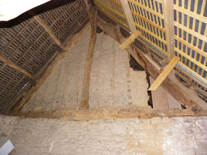 Cloison haute en pan de bois dans les combles.Immatriculation