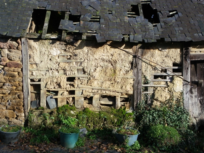 Saint-Georges-de-Reintembault, la Motte, torchis et pan de bois sur dépendance.Immatriculation