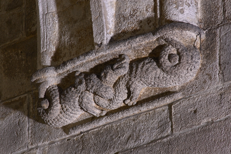 Choeur, culot sculpté de la retombée d'une voûte, dragons entrelacésImmatriculation