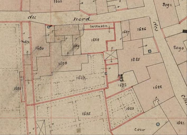 Plan cadastral de 1844. Section K8 intra-muros : détail rue du Nord. AD Morbihan 3P297/53.Immatriculation