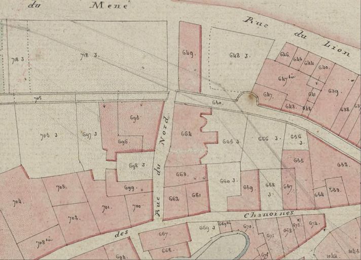 Plan cadastral de 1807. Section I3 intra-muros, détail rue du Nord. AD Morbihan 3P297/22.Immatriculation