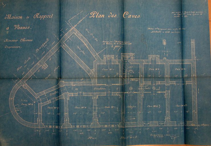 Maison de rapport à Vannes : plan des caves par Edmond Gemain, 1912. AM Vannes 5I162.-