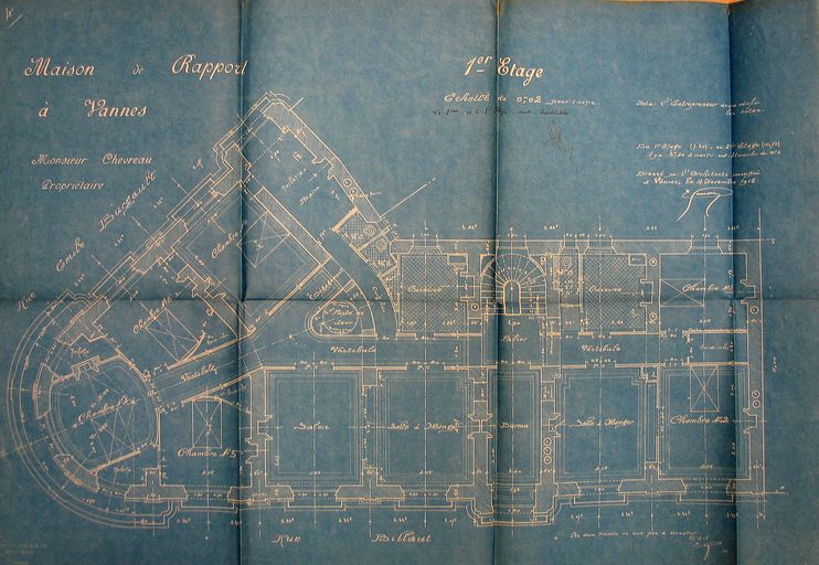 Maison de rapport à Vannes : plan du 1er étage par Edmond Gemain, 1912. AM Vannes 5I162.-
