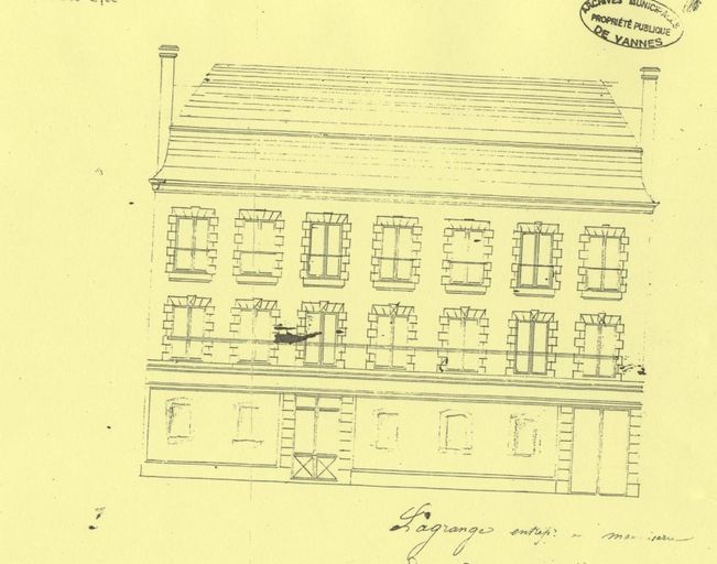 Projet Lagrange (non attribué) localisé rue des Bons-Enfants, vers 1879. AM Vannes 1O216.Immatriculation