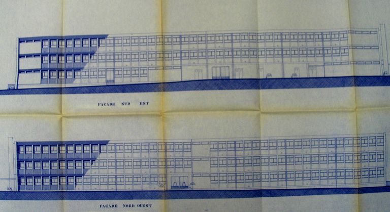 Façades sud-est et nord-ouest du collège Saint-Exupéry par Henry Auffret, 1969. AM Vannes 35W.Immatriculation