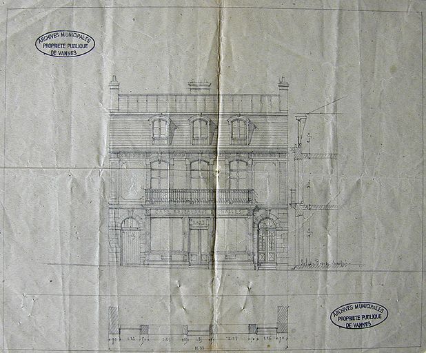 Elévation de la maison Raud, 16 rue Thiers. AM Vannes.Immatriculation