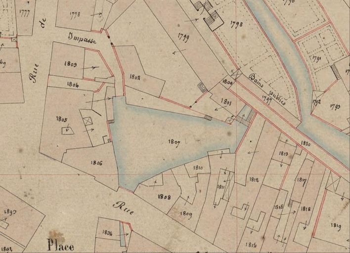 Plan cadastral de 1844 : section K8, détail rue Saint-Vincent. AD Morbihan 3P297/53.Immatriculation