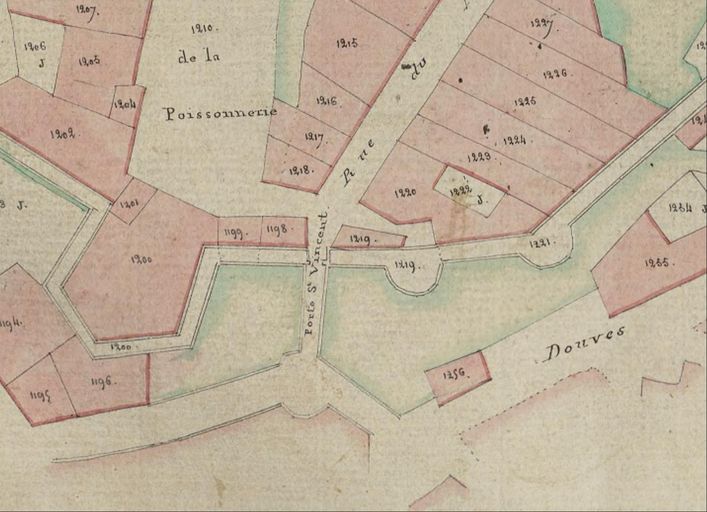 Plan cadastral de 1807 : section I3 détail porte Saint-Vincent. AD Morbihan 3P297/22.Immatriculation
