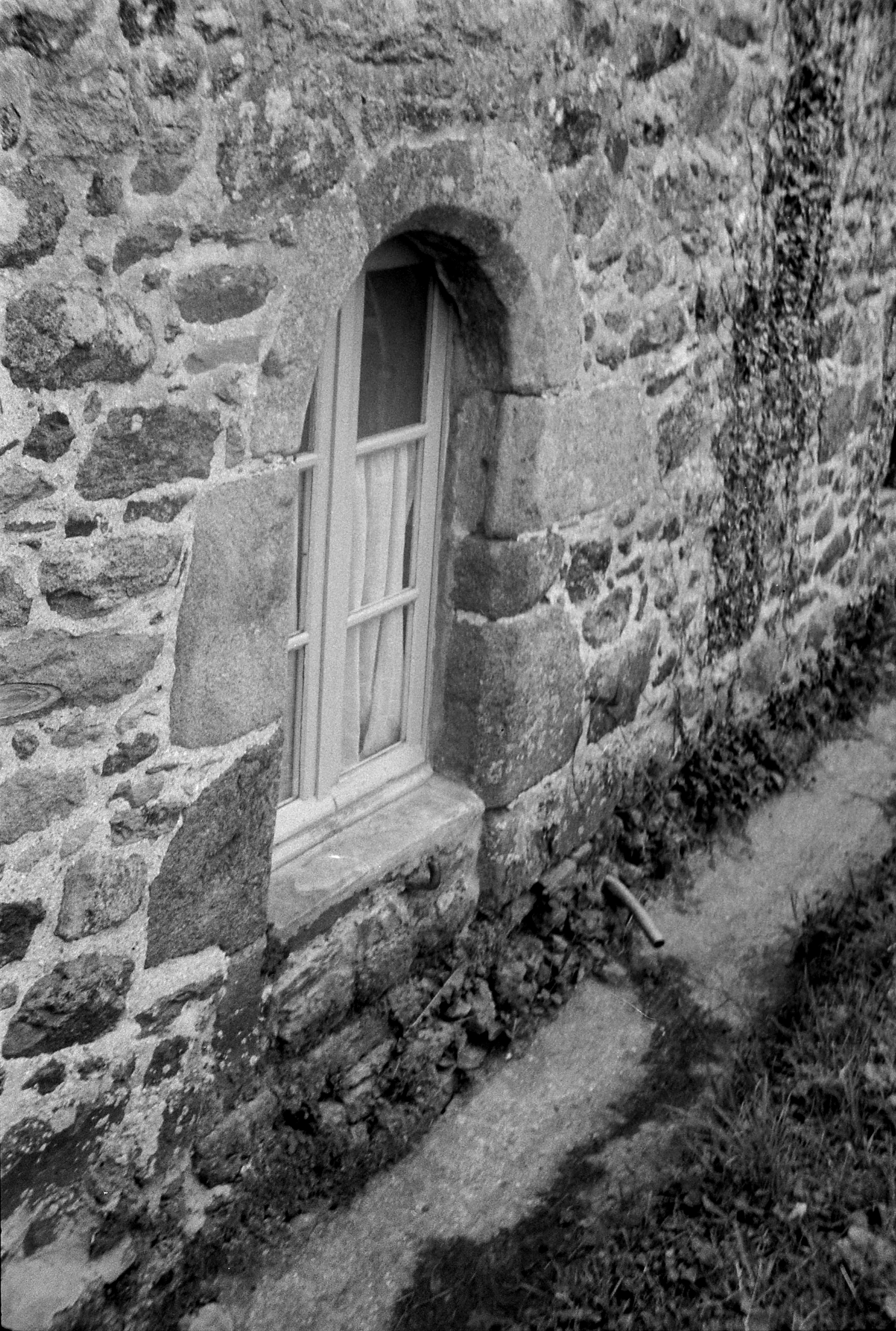 Détail façade postèrieure, porte plein cintre, 1 Le Vieux Bourg, état en 1972Immatriculation