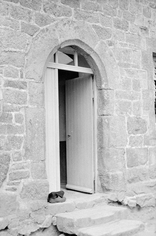 Trégrom, Pont-Even : vue du manoir, façade principale sud, détail de la porte en arc brisé surbaissé, photographie de 1972Immatriculation