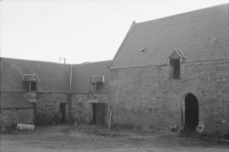 Trégrom, le bourg, ferme de Pen an Guer : grange datable du 17e siècle et ensemble de dépendance du 18e siècle, photographie de 1972Immatriculation