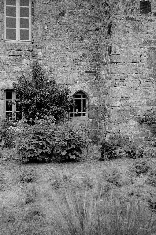 Vue de la façade postérieure orientée vers le sud-ouest, détail de la porte en arc brisé, photographie de 1972Immatriculation