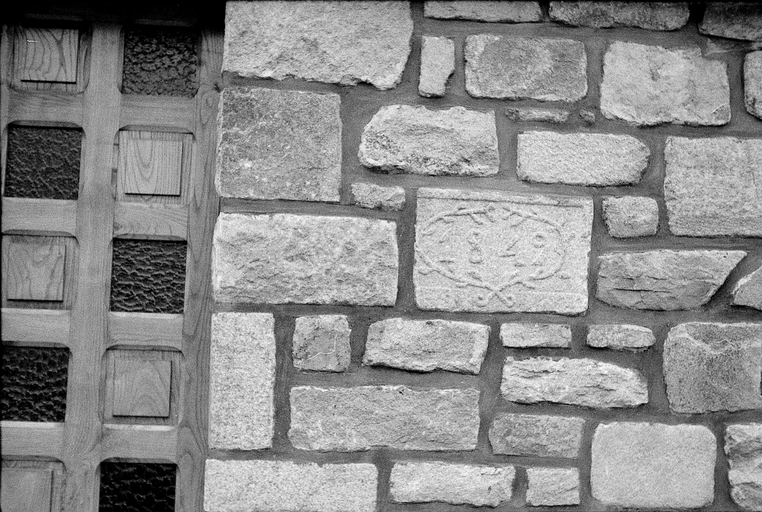 Trégrom, le bourg, ouest de l'église : chronogramme 1849, photographie de 1972Immatriculation