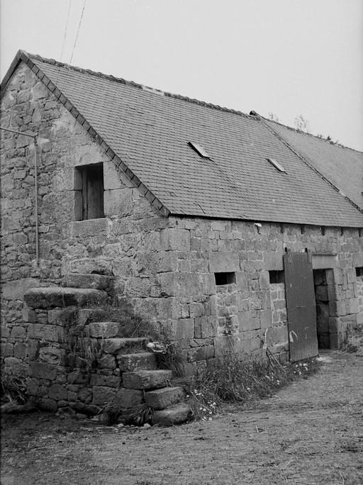 Trégrom, Prat Salic : ferme devenue étable, photographie de 1972. L'escallier extérieur accolé au pignon sud dessert les comblesImmatriculation