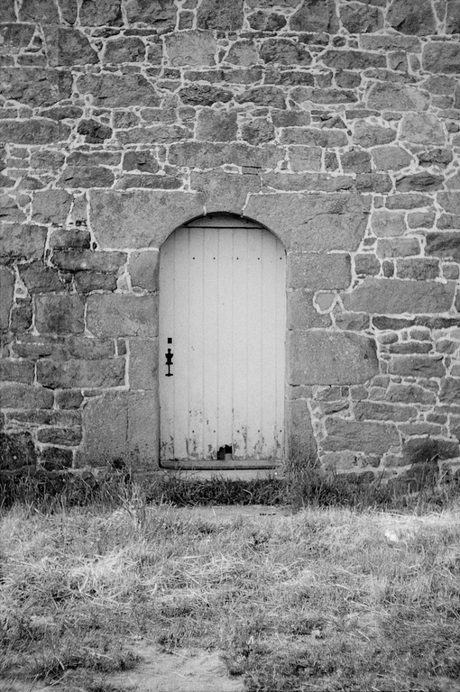 Vue de détail de la porte en arc plein cintre surbaissé, photographie de 1972Immatriculation