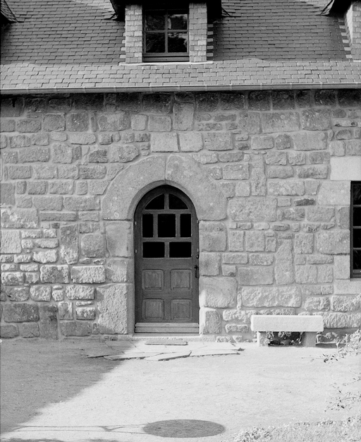 Trégrom, Keravel Huelllan : ferme, détail de la porte en arc brisé, photographie de 1972Immatriculation