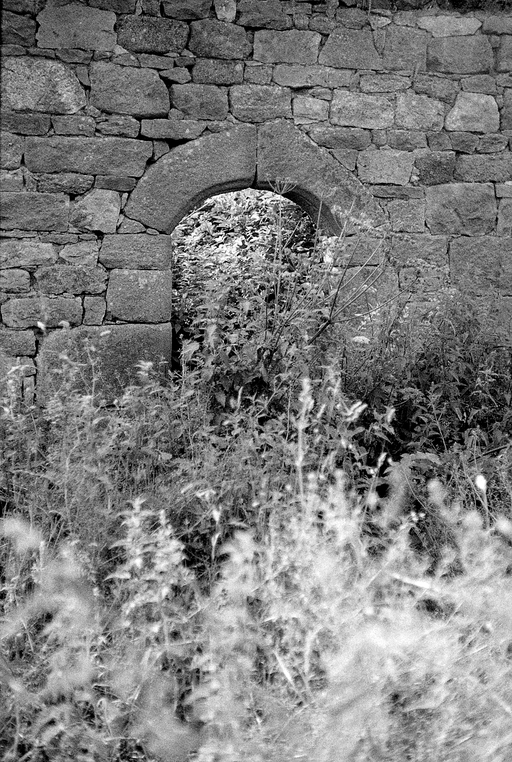 Trégrom, Kerstun : grange, détail de la porte en plein-cintre, photographie de 1972Immatriculation