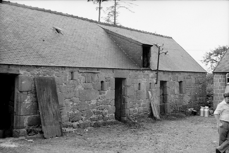 Trégrom, Keranfloc'h : ferme, photographie de 1972. Alternance d'un logis, d'une étable (niches de part et d'autre de la porte) et logisImmatriculation