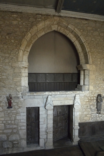 Intérieur, mur nord du choeur, portes et tribune seigneurialeImmatriculation