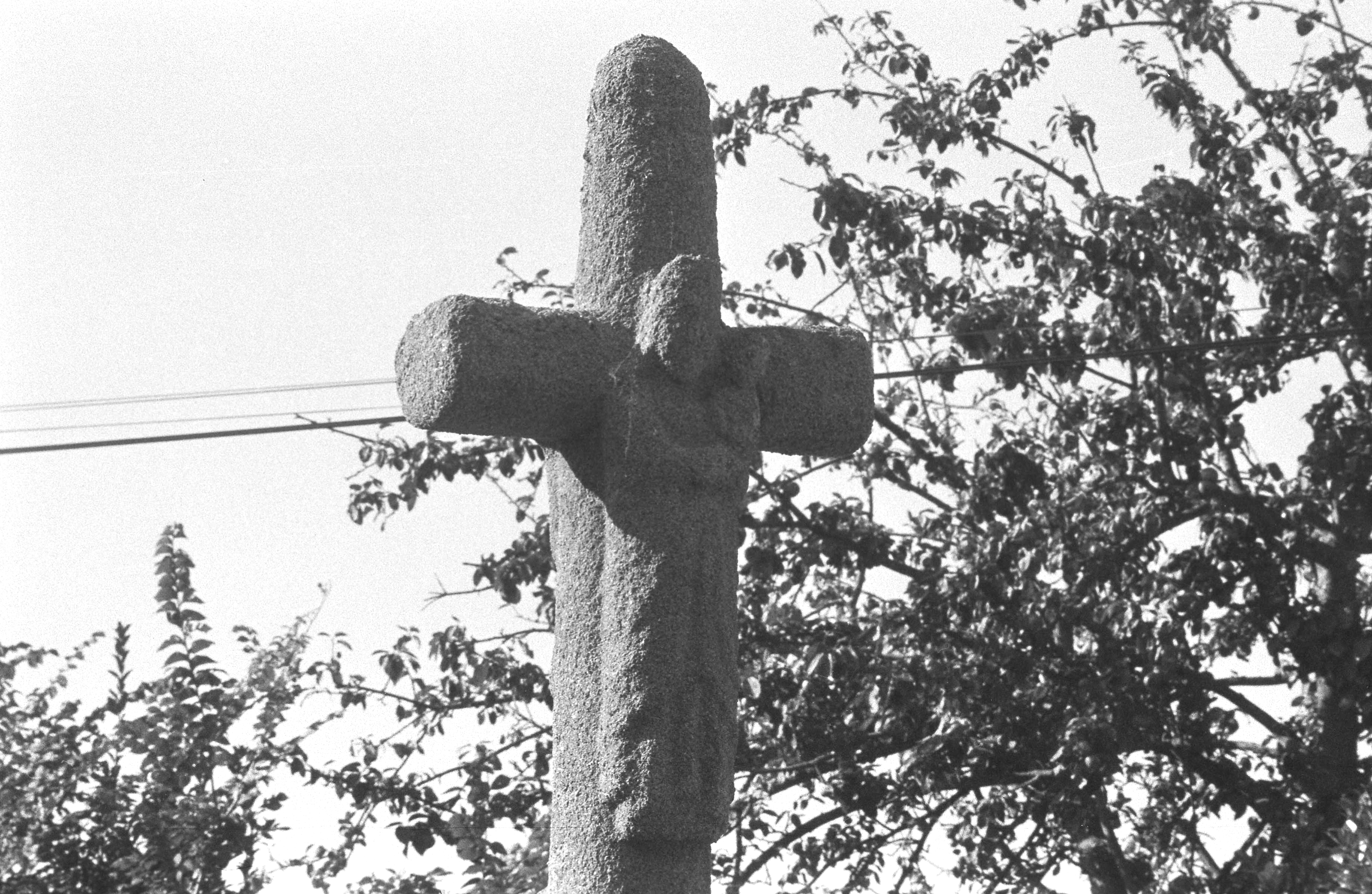 Kermaria-Sulard, le bourg : croix dite du Pavé (Vierge à l'enfant), ancienne photographie (1969-1975)Immatriculation