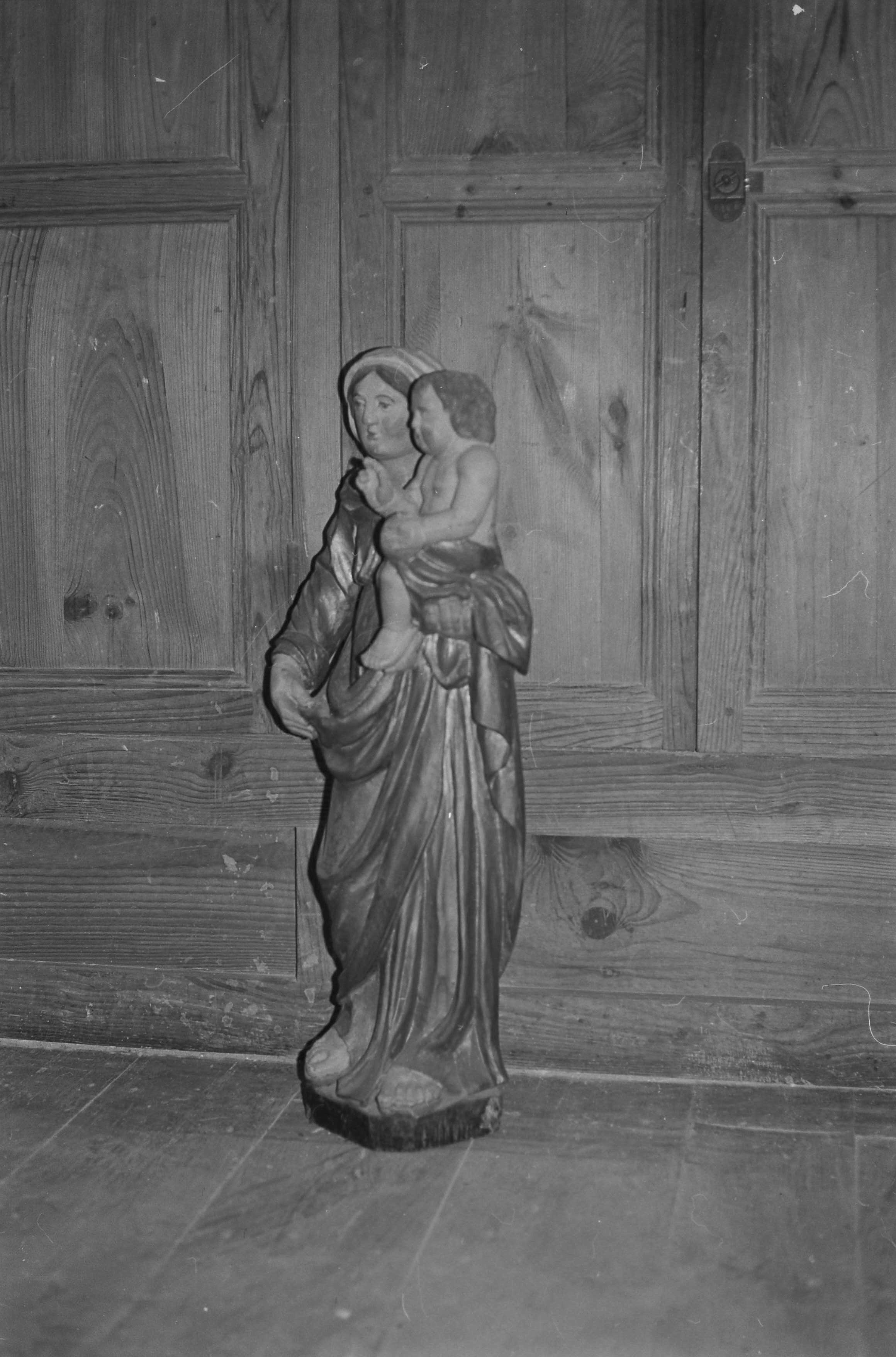 Kermaria-Sulard, le bourg : église paroissiale Notre-Dame-de-la-Joie, Vierge à l'enfant (profil), ancienne photographie (1969-1975)Immatriculation
