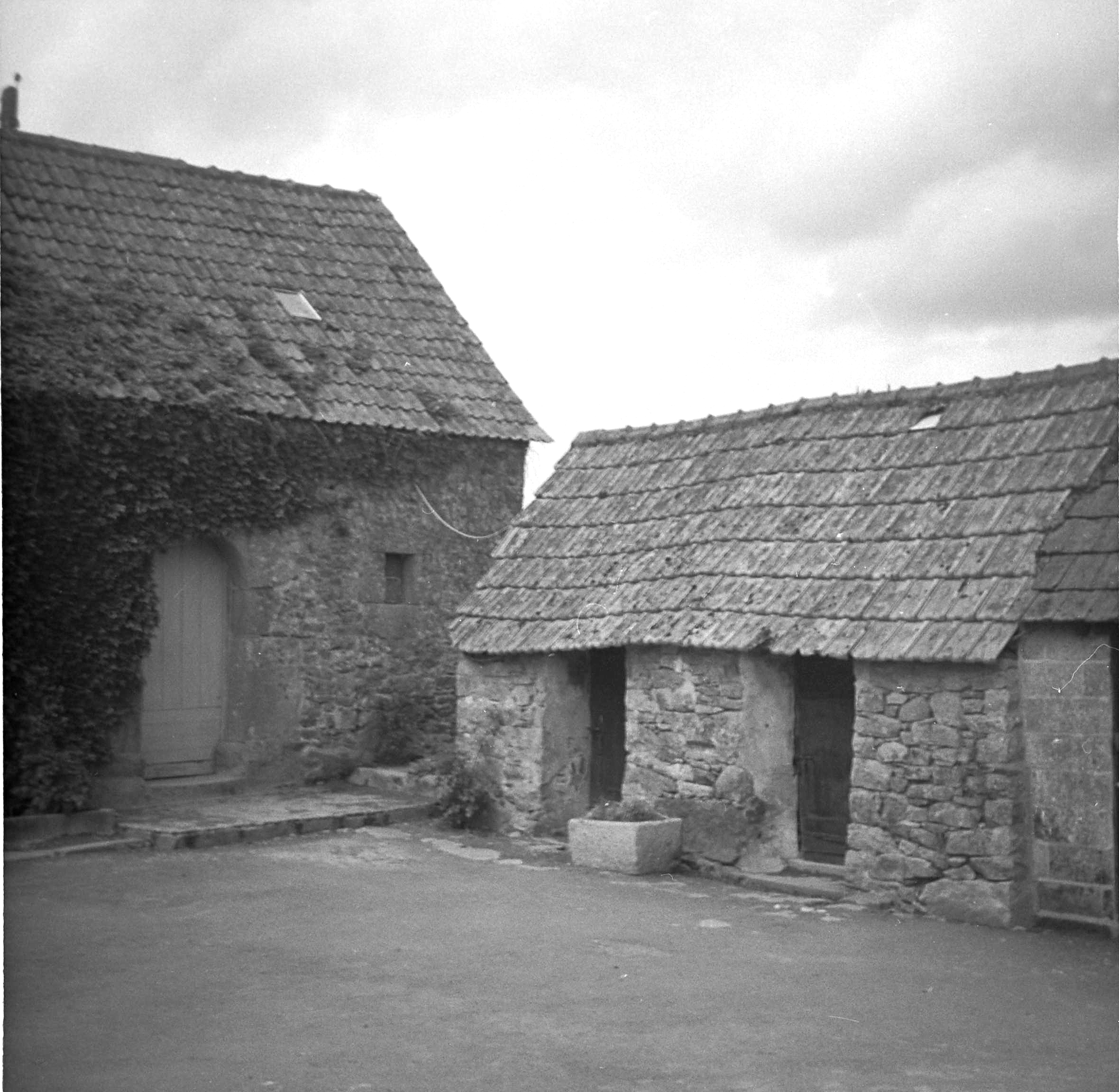 Kermaria-Sulard, Kervenac'h Braz : ferme, logis et soues à cochon double, ancienne photographie (1969-1975)Immatriculation