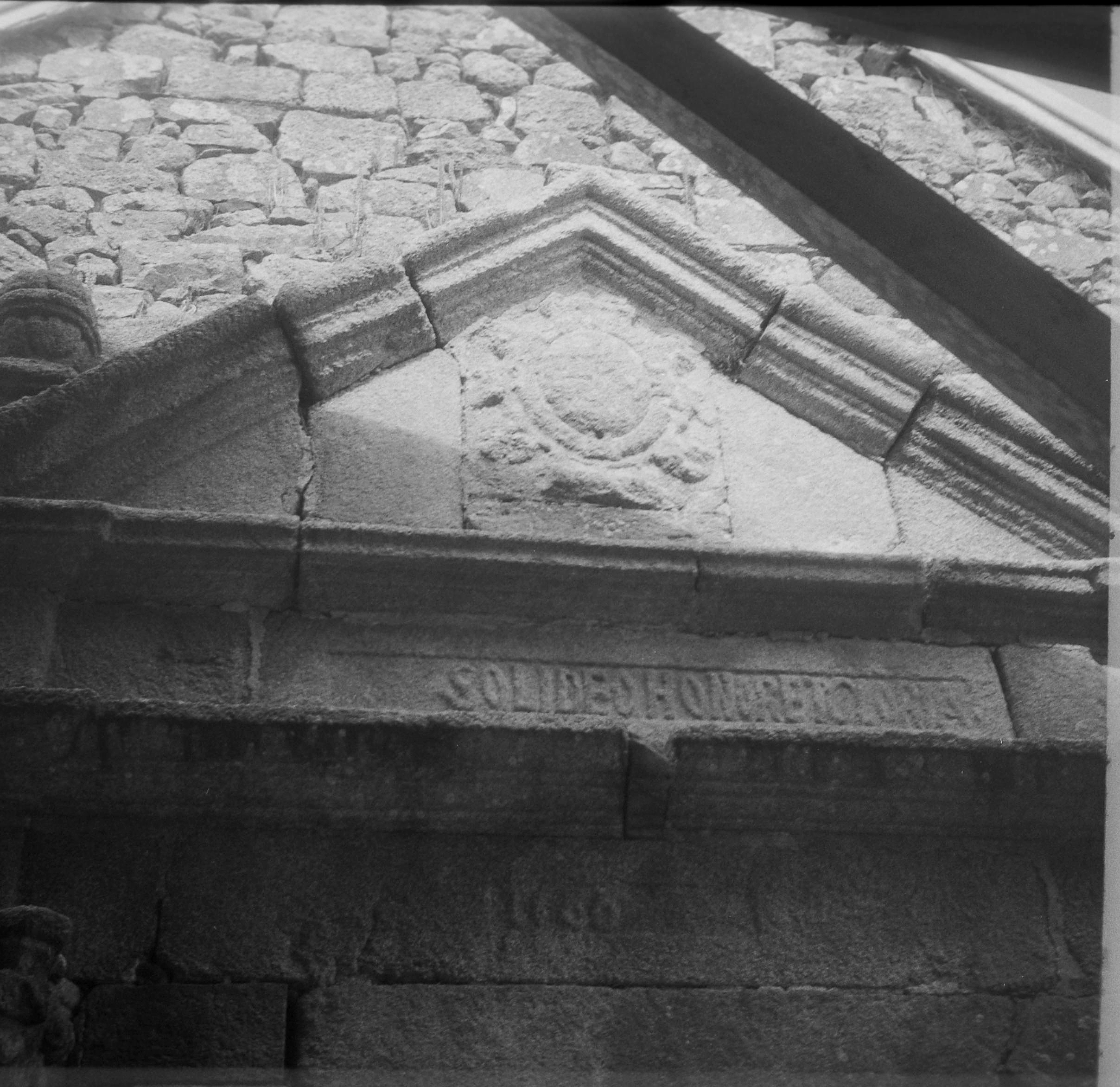 Kermaria-Sulard, site du manoir de Kerleau : chapelle seigneuriale, détail du fronton triangulaire, photographie de 1975Immatriculation