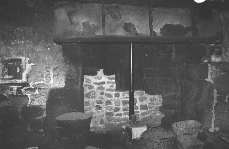 Lanvellec, le bourg, 6 rue de l´Argoat : cheminée du rez-de-chaussée engagée dans le pignon ouest, photographie de 1974Immatriculation
