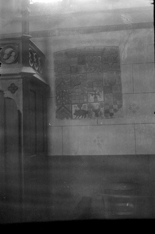 Vue intérieure, armoiries, photographie de 1974Immatriculation