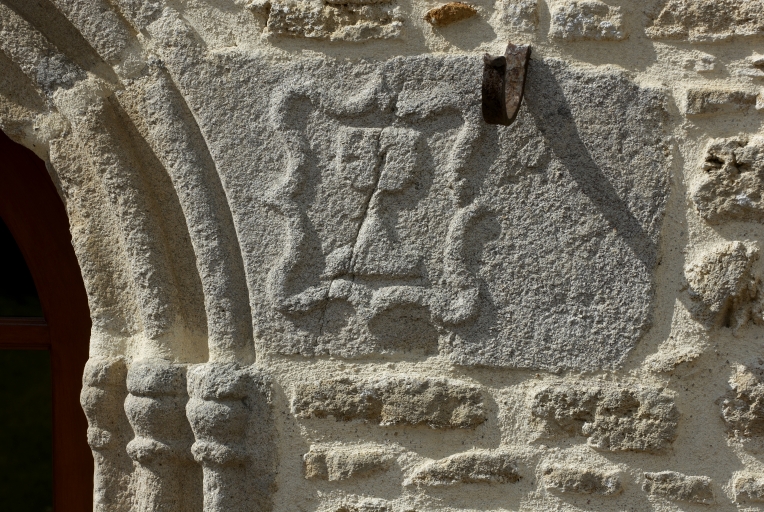 Détail : pierre avec décor sculpté, calice dans une mandorleImmatriculation