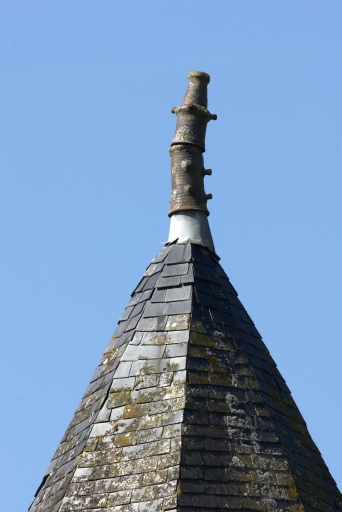 Tour arrière, détail, épi de faitâge en terre cuite vernisséeImmatriculation