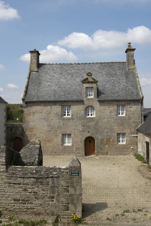 Plougras, le bourg : ancien presbytère s'ouvrant sur une cour avec puits et dépendancesImmatriculation
