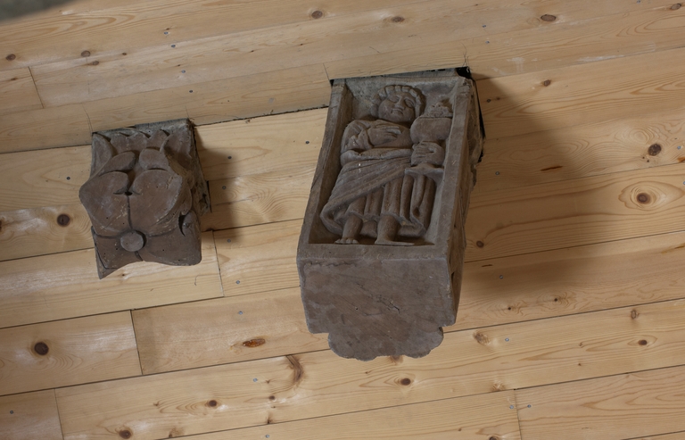 Plougras, le bourg : vue intérieure de l'église paroissiale Saint-Pierre, chapelle sud, poiçonImmatriculation