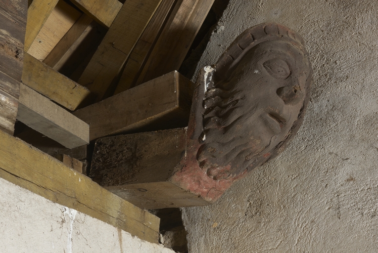 Loguivy-Plougras, le Dresnay : la chapelle Notre-Dame, vue de détail du blochet dans le transept sudImmatriculation
