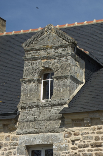 Détail, lucarne sculptée en calcaire coquillierImmatriculation