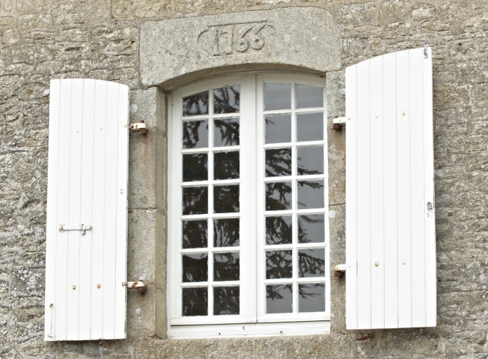 Détail, fenêtre en arc segmentaire portant la date de 1766 dans un cartoucheImmatriculation