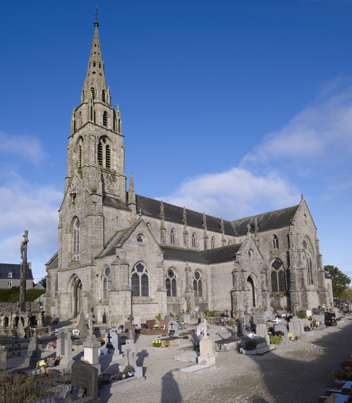 Plounérin, le bourg : église paroissiale Saint-Nérin, vue sud-ouestImmatriculation