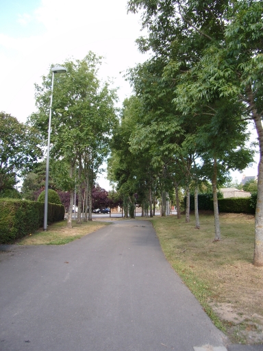 Paimpol, Goas-Plat. Vue générale du tracé de l'ancienne voie ferrée en direction du centre-ville (rue Yves-Marie Le Guyader)Immatriculation